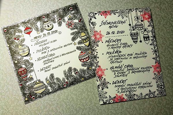 Štědrovečerní menu Návody 26. 11. 2020 Připravili jsme pro vás hned dvě varianty – obsah už ale musíte doplnit sami :-) Adventní tvoření Budeme potřebovat:bílý papírvánoční razítkačerný razítkovací polštářek Izink Quick Dryčerný popisovač Faber-Castell nebo jiný tenký linerprůhledný embosovací polštářekembosovací práškyhorkovzdušná pistolelepidlo nebo oboustranně lepicí páskarámečková razítka Doodlers Stamp s vánočním motivemnůžkypastelky nebo fixy3D lepicí čtverečkysamolepicí kamínkytřpytivé papíryPrvní varianta:1. Narazítkujeme vánoční ozdoby do jednoho z horních rohů papíru a také rámeček z vloček. Vše razítkujeme černým inkoustem, ideálně voděodolným polštářkem Izink Quick Dry. Ozdoby lehce dokreslíme – protáhneme šňůrky a domalujeme mašličky.2. Můžeme lehce profoukat horkovzdušnou pistolí, abychom uspíšili schnutí. Do černého vločkového rámečku narazítkujeme další vločky, tentokrát průhledným embosovacím médiem, zasypeme barevným embosovacím práškem a zapečeme pistolí.3. Napíšeme menu, které budeme o Štědrém večeru podávat.4. Z pruhu bílého papíru vyrobíme stojánek, tzn., že pruh přehneme napůl. Vyrobenou kartičku nalepíme na přední stranu, aby menu mohlo stát na stole.Druhá varianta:1. Na bílý papír narazítkujeme vánoční rámečkové razítko.2. Otiskneme ho ještě jednou na další papír a vystřihneme z něj vánoční ozdoby a vybarvíme je pastelkami nebo fixy.3. Nalepíme na černobílý rámeček, některé ozdoby lepíme pomocí 3D lepicích čtverečků, abychom dosáhli vyvýšeného efektu. Doladíme červenými samolepicími kamínky.4. Do prostoru uprostřed napíšeme menu. Pokud toto místo nestačí, vystřihneme z bílého papíru větší čtverec, na ten napíšeme menu a potom ho nalepíme na rámeček.5. Celou kartičku podlepíme glitrovým papírem.Další tipy k výrobě:Na tento výrobek můžeme využít techniky krasopsaní nebo kaligrafie.Kartičky se svátečním menu jsou pěknou ozdobou slavnostně prostřeného stolu a perfektně doplňují poskládané ubrousky – nemusí být jen ve tvaru obdélníku, ale jistě se budou vyjímat i v jiných tvarech, např. stromeček, kolečko nebo hvězda.Dobře bude vypadat i kartička zdobená vánoční pečetí. Produkty, které by vás mohly zajímat (5) -50% Kód: 0037789 Razítkovací polštářek Izink Quick Dry, rychleschnoucí -22% Kód: 55349 Razítka Stampo Noël, 12 ks - Krásné Vánoce Kód: 10019 Embosovací polštářek Izink Embossing - průhledný -25% Kód: STI 4000 Samolepicí 3D pěnové polštářky, 940 ks - čtverečky, bílé -22% Kód: 1616486 Třpytivý papír, A4 - šedý Zpět do kategorie Další podobné články Návody Papírový hrníček na vánoční dárečky 7. 11. 2025 Hledáte drobný, ale osobitý dárek, který potěší každého? Vyrobte si s námi kouzelný papírový hrneček – milou kapsičku, do které schováte čaj, kávu nebo malou čokoládu. Jednoduchý projekt, který zvládnete během chvilky a zaručeně vykouzlí úsměv na tváři všem kolegům v práci i přátelům! Návody Sváteční lucerničky 6. 11. 2025 V předvánočním čase plném světýlek a vůně perníčků potěší každé malé kouzlo, které si vytvoříme sami. Připravili jsme jednoduchý návod, podle kterého si doma vyrobíte jemně zářící adventní lucerničku, která zútulní váš domov a potěší nejen děti. Vytvořte si kouzelnou atmosféru! Návody Adventní kalendář z roliček 5. 11. 2025 Recyklovaný adventní kalendář, který skvěle vypadá? Použijte roličky od toaletního papíru! Je to nápadité, snadné a děti vám určitě rády pomůžou.