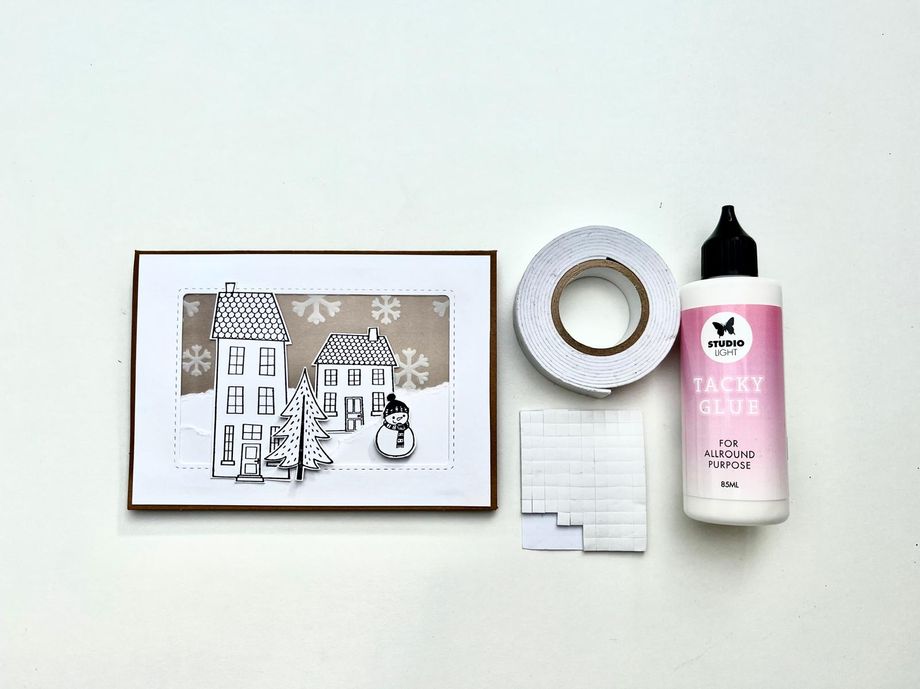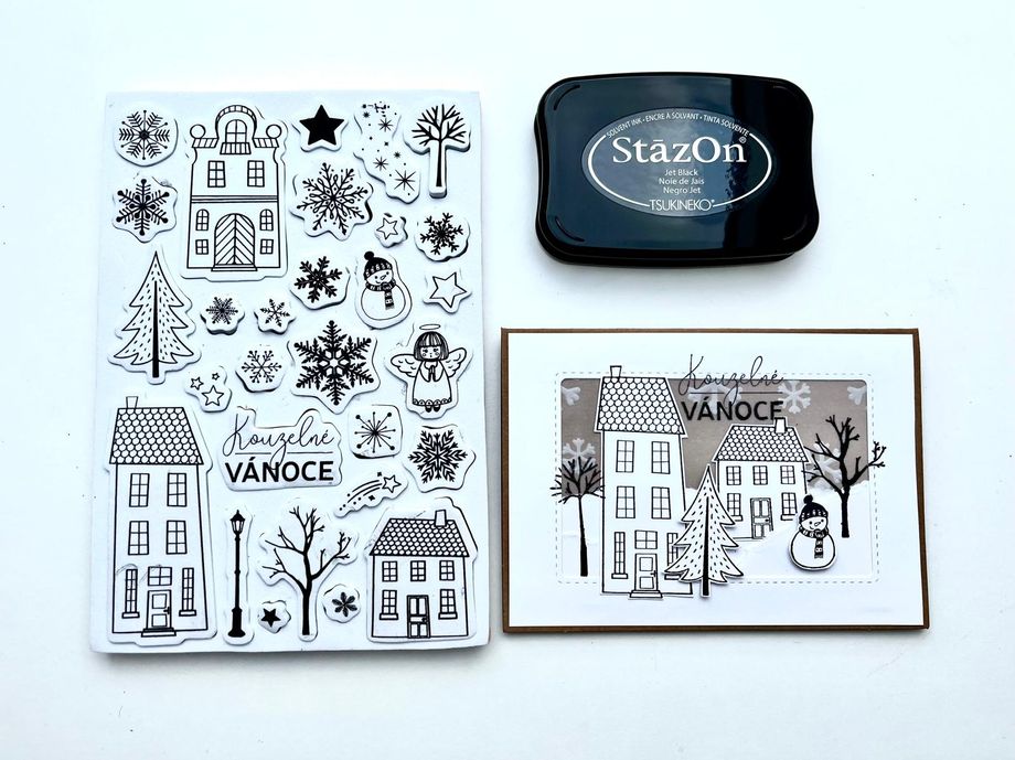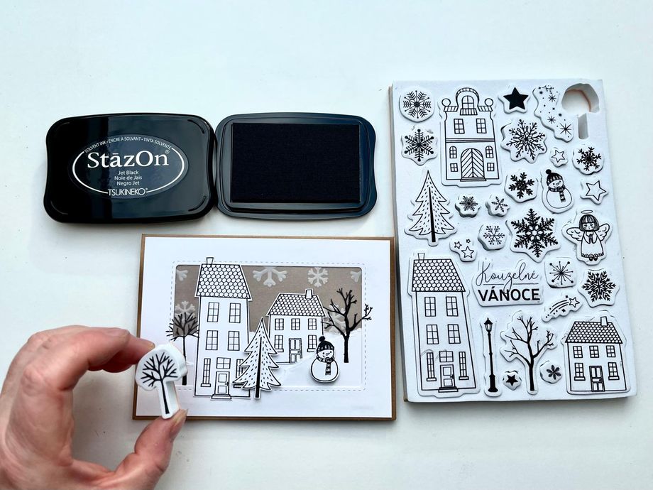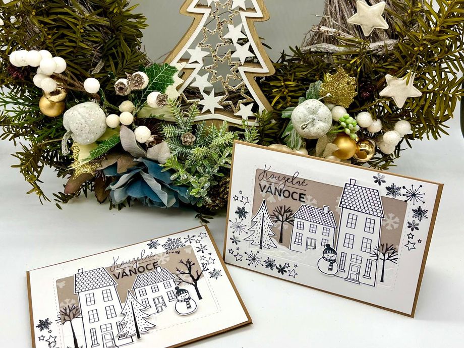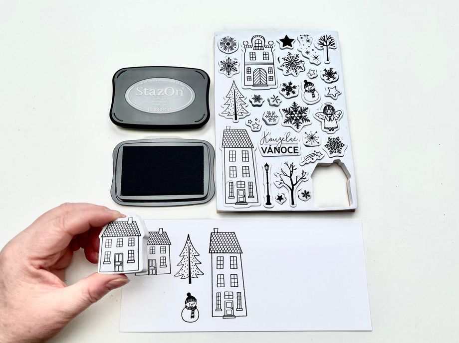 Vánoční přání s vesničkou Návody 2. 11. 2025 Malá zimní vesnička ukrytá pod sněhovou peřinou - přeneste tuto kouzelně klidnou scenérii na své vánoční přání. V dnešním návodu si vyrobíme přáníčko s domečky, které potěší svou ručně tvořenou atmosférou svátečního času. Aktuality Přání Tvoření z papíru Adventní tvoření Použitý materiál a pomůcky: bílý papír vyšší gramáže nůžky nebo řezačka detailní nůžky pravítko obyčejná tužka vánoční vellum papír tekuté lepidlo základ přání v kraftové barvě sada razítek Kouzelné domečky permanentní černá razítkovací barva pěnová oboustranně lepicí páska nebo 3D čtverečky Postup: Z bílého papíru ustřihneme obdélník o velikosti 14,5 x 10 cm. Narýsujeme na každé straně pruh 1,8 - 2 cm od hrany obdélníku. Pole uprostřed odstřihneme - vznikne nám rámeček. Pokud vlastníte vyřezávací strojek, můžete využít některou z vyřezávacích šablon s přibližně velikými obdélníky. Z vellum papíru vystřihneme obdélník velký cca 13 x 9 cm. Z dalšího bílého papíru utrhneme ručně dva "kopce". Nalepíme je zespodu pod bílý rámeček a pod kopce ještě vellum papír. Celý tento rámeček nalepíme na kraftový základ přáníčka. Na další bílý papír narazítkujeme dva domečky, strom a sněhuláka. Používáme permanentní razítkovací polštářek. Narazítkované motivy vystřihneme. Nalepíme je na základ přání. Některé obrázky můžeme přilepit pomocí pěnové pásky nebo pomocí 3D čtverečků. Dorazítkujeme stromy. Otiskneme také textové razítko - "Kouzelné Vánoce". A jako poslední narazítkujeme několik sněhových vloček na kraje přáníčka. A máme hotovo! Naše tipy: Do okének můžete nastříhat glitrový papír, dodáte tak domečkům "svítící" efekt. Střechy domečků mohou být zasněžené - stačí použít 3D dekorační sníh a zasypat sypkými třpytkami. Zpět do kategorie Další podobné články Návody Jak na minimalistický adventní kalendář 31. 10. 2025 V prvním díle adventního kalendáře nápadů se podíváme na to, jak si hravě ve 3 krocích vyrobit svůj vlastní šuplíčkový kalendář! Vyrobíte ho pro děti, dospěláky, nebo domácí mazlíčky? Návody Jednoduchá tečkovaná mandala 5. 9. 2025 Tvoření mandaly je jako tichá cesta do vlastního nitra. Každá tečka se postupně skládá v obraz, který není jen krásný na pohled, ale nese i část vaší energie a nálady. Tečkovaná mandala na plátně není jen výtvarný projekt – je to meditace! Návody Halloweenské tričko s dýní a mandragorou 22. 8. 2025 Ačkoliv Halloween u nás není svátkem původním, my v Aladine možnost vyřádit se ve strašidelné výzdobě, dlabání dýní a výrobě příšerných dekorací vítáme. Proto vám dnes předvedeme, jak na tričko s dýní, které ve tmě svítí oči (a lebkám taky).