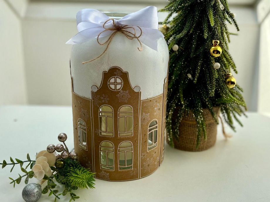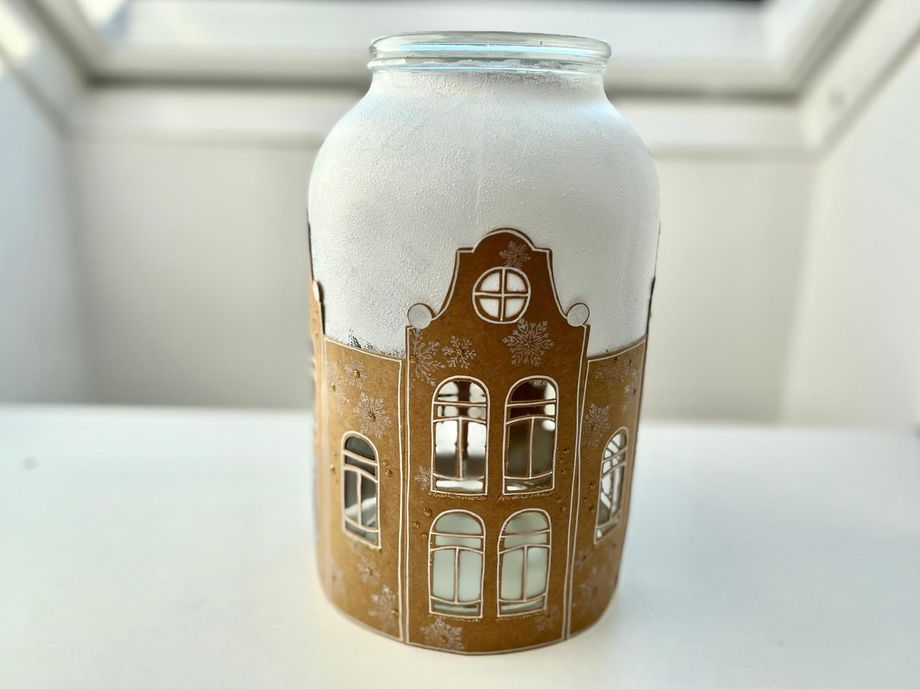 Zimní svícen s domečky Návody 1. 9. 2025 Sklenice, papírové domečky a světýlka – to je recept na kouzelný vánoční svícen s nádechem pohádkové vesničky. V dnešním návodu vám ukážeme, jak snadno vytvořit dekoraci, která navodí tu pravou vánoční atmosféru a je vhodná i jako krásný dárek. Aktuality Recy-věci Home deco Adventní tvoření Potřebný materiál a pomůcky: Sada domečků Vypichovací nástroj Bílý fix Sada razítek s vločkami a domečky Bílý razítkovací polštářek Zlatá třpytivá akrylová barva Zavařovací sklenice nebo váza Bílá akrylová barva Houbička na tupování barev Oboustranně lepicí páska Stuha nebo provázek Světelný řetěz nebo svíčka Postup: Nachystáme si 2 domečky v kraftové barvě a s pomocí ostrého nástroje vyloupneme všechna okýnka. Bílým akrylovým fixem obkreslíme okýnka a dveře, popř. i všechny stěny domu. Na domečky narazítkujeme vločky bílým razítkovacím polštářkem. Bílým fixem můžeme dokreslit i drobné dekorační motivy. Drobnosti dokreslíme anebo zvýrazníme zlatou třpytivou barvou, která má šikovný úzký aplikátor a lze tedy kreslit přímo špičkou tuby. Necháme zaschnout. Horní polovinu sklenice natupujeme bílou akrylovou barvou a houbičkou. Barvu necháme uschnout. Na velikou zavařovací sklenici nebo vázu nalepíme připravené papírové domečky, a to pomocí oboustranně lepicí pásky. Domečky zarovnáme se spodkem sklenice. Kolem hrdla přivážeme stuhu, provázky nebo mašli. Dovnitř svícnu dáme řetěz se světýlky, velikou svíčku anebo svíčku na baterii. Naše tipy: V případě, že některé okýnko nejde dobře vyloupnout, pomůžeme si detailními nůžkami. Pokud budeme chtít domeček veselejší, použijte barevné akrylové fixy nebo barvy, přilepte obrázky, nalepte samolepky nebo aplikujte rýžové papíry technikou decoupage. Další motivy můžeme dokreslit 3D konturou anebo tekutými perličkami. Taktéž samolepicí kamínky a perličky dokáží udělat zajímavé prvky na domečcích. Domečky můžete „zasněžit“ dekoračním sněhem v tubě s aplikátorem. Využít lze i techniku horkého embossingu – vločky budou nejen výraznější, ale budou i lesklé a budou mít 3D efekt. Do okýnek můžeme zezadu přilepit pauzovací papír anebo acetátovou fólii. Zpět do kategorie Další podobné články Návody Papírový hrníček na vánoční dárečky 7. 11. 2025 Hledáte drobný, ale osobitý dárek, který potěší každého? Vyrobte si s námi kouzelný papírový hrneček – milou kapsičku, do které schováte čaj, kávu nebo malou čokoládu. Jednoduchý projekt, který zvládnete během chvilky a zaručeně vykouzlí úsměv na tváři všem kolegům v práci i přátelům! Návody Sváteční lucerničky 6. 11. 2025 V předvánočním čase plném světýlek a vůně perníčků potěší každé malé kouzlo, které si vytvoříme sami. Připravili jsme jednoduchý návod, podle kterého si doma vyrobíte jemně zářící adventní lucerničku, která zútulní váš domov a potěší nejen děti. Vytvořte si kouzelnou atmosféru! Návody Adventní kalendář z roliček 5. 11. 2025 Recyklovaný adventní kalendář, který skvěle vypadá? Použijte roličky od toaletního papíru! Je to nápadité, snadné a děti vám určitě rády pomůžou.