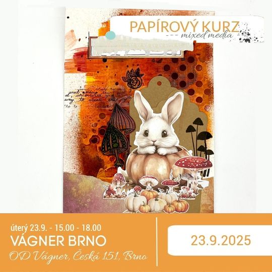 Na kurzu vás naučíme kombinovat různé výtvarné techniky v jeden celek s cílem vytvořit zajímavou koláž, tentokrát s dokonale barevnými podzimními motivy. Pracovat budeme s razítky, šablonami, strukturovacími pastami, akvarelovými a akrylovými barvami. Kouzlit budeme i s různými papíry, vylupovacími obrázky a nažehlovačkami. Není nutné umět dopředu jakoukoli techniku, kurz je vhodný i pro úplné začátečníky. Tvořit budeme na kartony A5 (cca 3–4 ks), které si můžete založit do svého art journalu nebo je využít k zarámování, k výrobě přáníček, dárkových tašek, krabiček apod. Přijďte si s námi hrát!