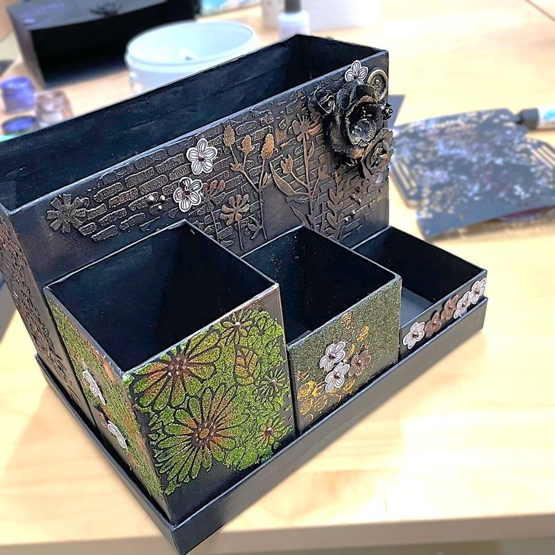 Máte rádi kreativní tvoření a chcete dodat svému pracovnímu stolu osobitý nádech? Přijďte na náš kurz, kde se seznámíte s technikami kombinovaných médií a vytvoříte si vlastní organizér nejen na výtvarné pomůcky. Naučíme vás spoustu kreativních technik – mixed media, horký embossing, práci s různými pastami, zlacení apod. Po skončení kurzu si odnesete hotový organizér, který skvěle ozdobí váš pracovní prostor. Přijďte si užít kreativní den plný barev, textur a inspirace!