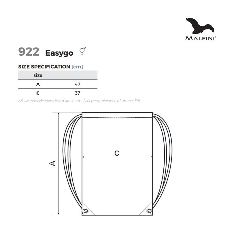 Tkaný batůžek s jednou velkou kapsou na stahování pomocí bavlněných šňůrek. Uvnitř je kapsa na zip (rozměry 20 x 23 cm). Dolní rohy vaku jsou zpevněny zdvojeným materiálem a kovovými kroužky. Plátnová vazba, vnitřní etiketa je ze saténu. Pratelné na 40 °C.