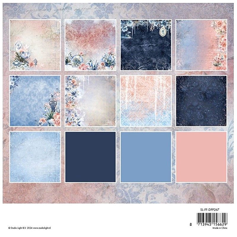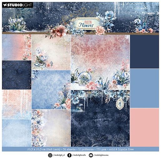 Blok scrapbookových papírů ze zimní kolekce Frozen Flowers obsahuje 36 podkladových papírů (18 druhů po 2 ks). Využijete je na scrapbooking, cardmaking a další papírové tvoření. Listy o rozměru 20,3 x 20,3 cm mají matný jednostranný potisk. Jsou bez kyseliny a neobsahují lignin, gramáž 170 g/m2.