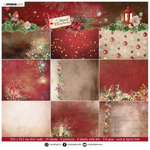 Polovina listů má navíc krásně lesklé pozlacené prvky. Papíry využijete na scrapbooking, cardmaking, Project Life a další papírové tvoření. Listy o rozměru 20,3 x 20,3 cm mají matný jednostranný potisk. Papíry jsou bez kyseliny a neobsahují lignin, gramáž 170 g/m2.