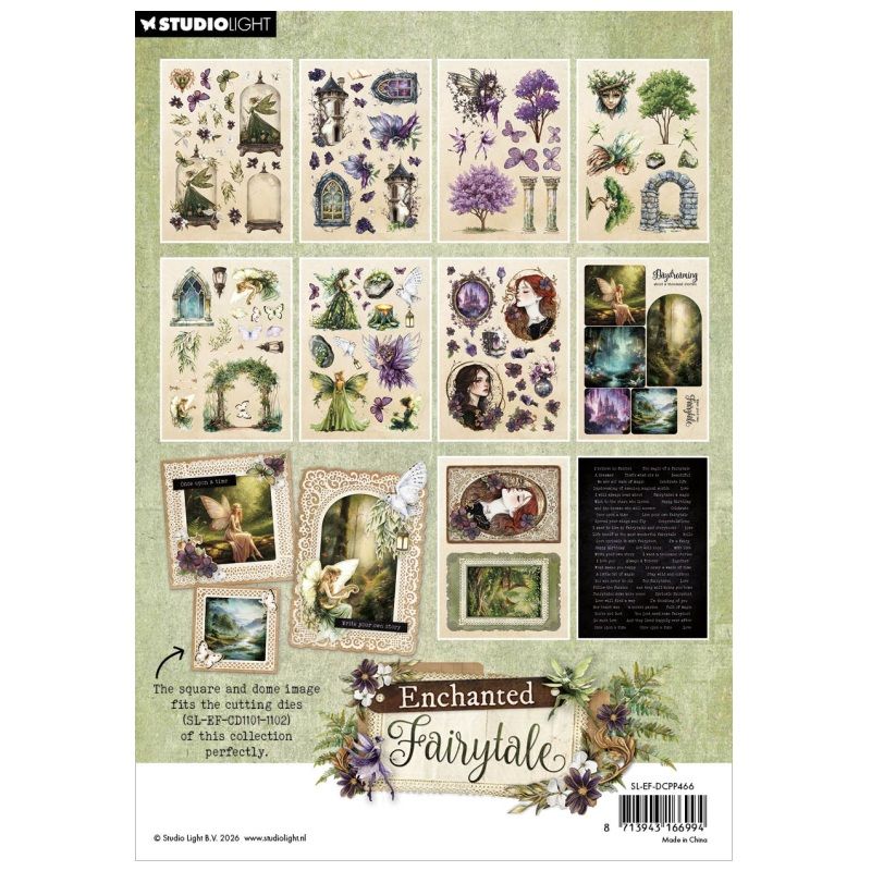 Vylupovací obrázky v bloku s romantickými fantasy motivy z kolekce Enchanted Fairytale („začarovaná pohádka“) se hodí na scrapbooking, cardmaking a další vyrábění. Jednotlivé motivy jsou předvyseknuté, obrázky stačí ze stránky vyloupnout k dalšímu tvoření – nemusí se vystřihovat. Nalepit je na svůj projekt můžete pomocí lepidla , lepicí pásky anebo lepicích 3D polštářků.