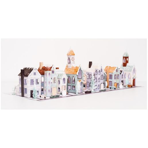 Vyrobte si letos vlastní vánoční dekorace jinak – zábavně a jednoduše! Máme pro vás blok s natištěnými domečky, stromy, auty a dalšími náležitostmi zasněžené vesničky v tlumených barvách. Jednotlivé motivy jsou předvyseknuté, obrázky stačí ze stránky pouze vyloupnout k dalšímu tvoření, není nutné je vystřihovat. Lehce tak ze stránky vyloupnete domeček se střechou, slepíte lepidlem a nakonec naaranžujete do vlastní mini ulice. Geniálně jednoduché!