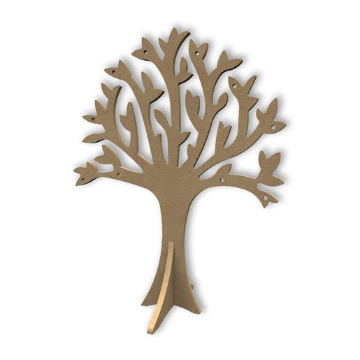 Dřevěný polotovar na výrobu dekorací. Skládá se ze dvou částí – strom a podstavec. Vhodný k umístění do prostoru. Na větvích je několik otvorů k zavěšování ozdob či šperků.