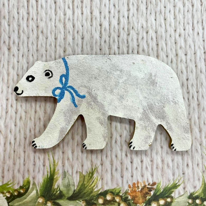Dřevěný výřez k dekoraci Gomille, závěsný, 13x7 cm - Lední medvěd