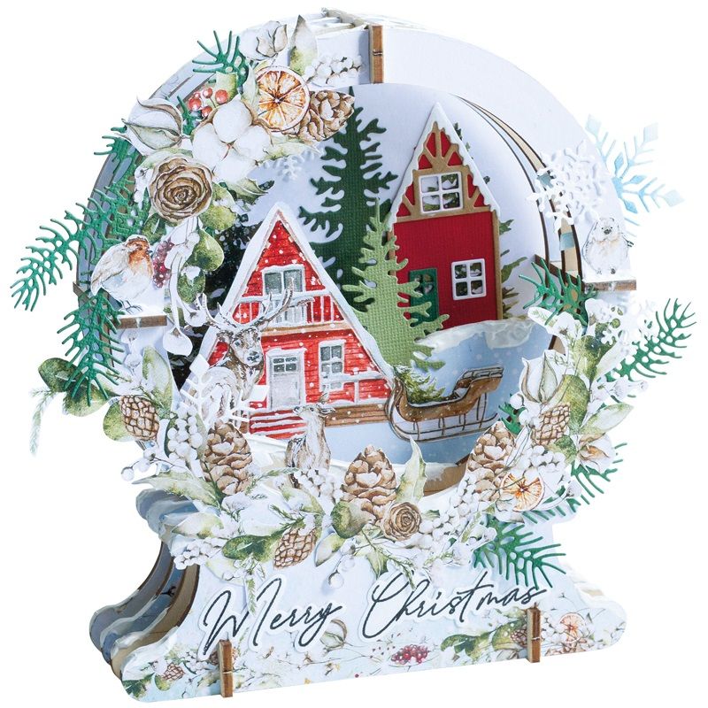 Na dozdobení svého sněžítka si bohatě vystačíte s papírenskými produkty Studio Light. Na větší plochy (jako kruhové pozadí či rámeček) postačí i papíry formátu A5. Nesestavené dílky můžete použít jako šablonu a obkreslit si na zvolený papír jejich tvar, který pak vystřihnete a nalepíte. Doporučujeme všestranné DIY Bloky , ve kterých najdete oboustranné designové papíry, které jsou ideální k využití na pozadí. V těchto blocích dále najdete různorodé papírové výseky – dekorativní obrázky, které jsou předvyseknuté a lze je ze stránky bloky jednoduše vyjmout a umístit na koláž pomocí lepidla či pěnové lepicí pásky , která svou tloušťkou ještě přispěje k prostorovosti díla.
