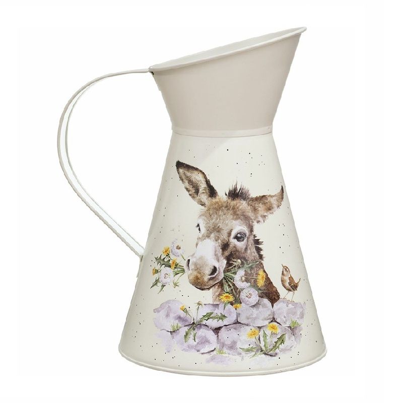 Ocelový džbán s velkým uchem bude elegantním domovem pro čerstvé i umělé květiny. Na jednoduchém kropenatém pozadí vyniká akvarelová ilustrace oslíka, další drobné obrázky jsou i na uchu džbánku. Jelikož pochází z dílny anglické firmy Wrendale Designs , je tvarovaný ve stylu farmářských džbánů z viktoriánského období, jejichž šarm zaručené dodá i vašemu domovu.