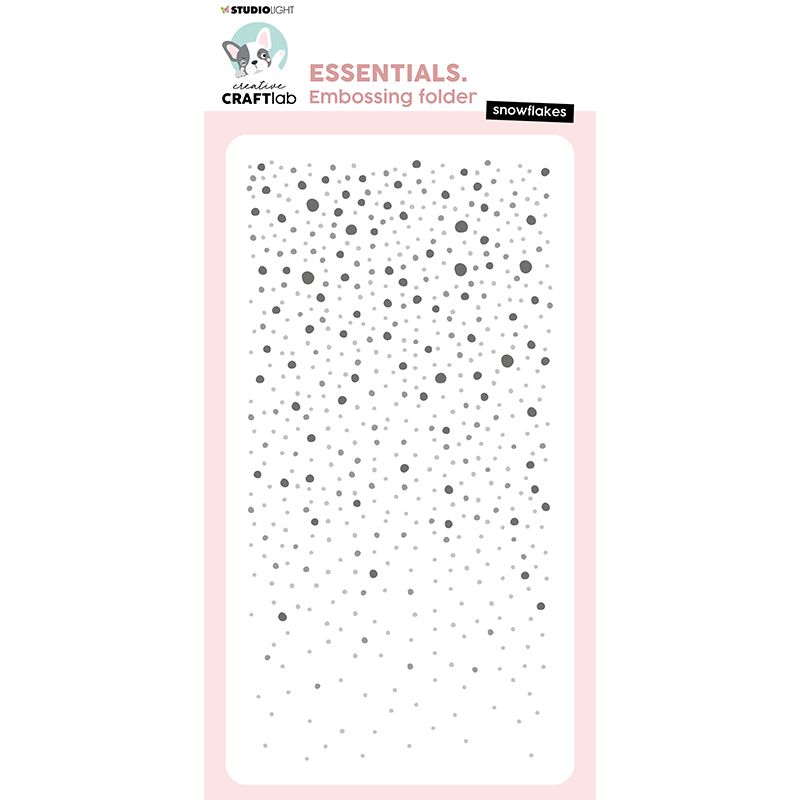 Embosovací kapsa s motivem sněhových vloček, která slouží k vytvoření reliéfu na papíře. Kapsa s vloženým papírem se vsune do přístroje Big Shot (nebo podobného strojku) a tlakem dochází k vylisování motivu.