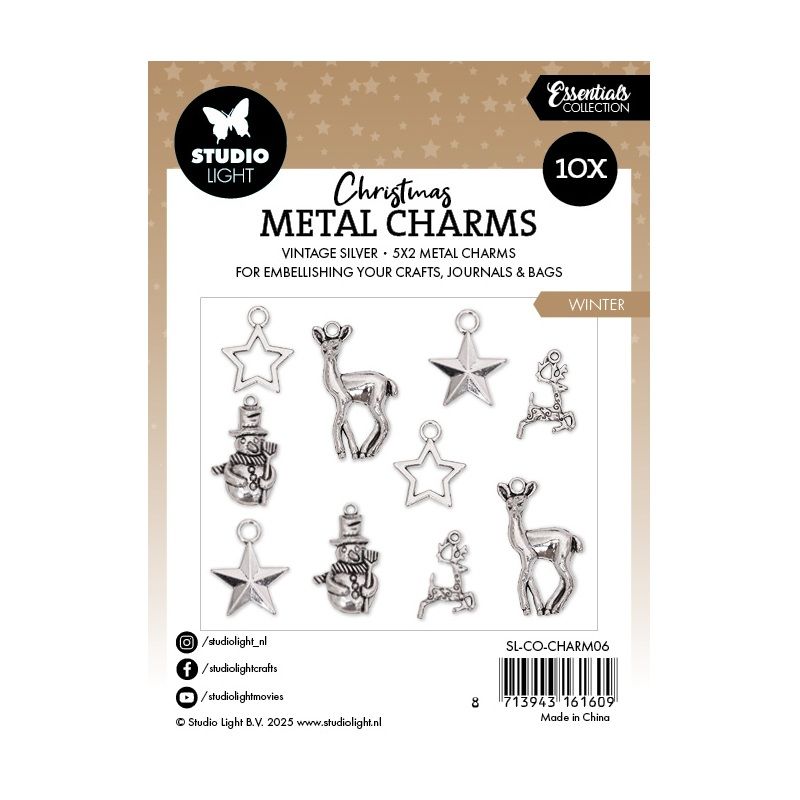 Drobné kovové přívěsky ve stříbrném provedení se hodí ke zdobení vánočních kreativních projektů od papírového tvoření až po bižuterii. Využijete je ke zdobení scrapbooků, přání, visaček, záložek do knih, dárkových tašek a krabiček apod., jdou zakomponovat i do vlastnoručně vyrobených šperků.