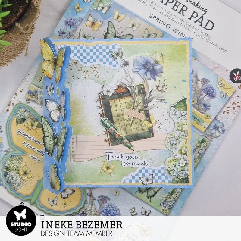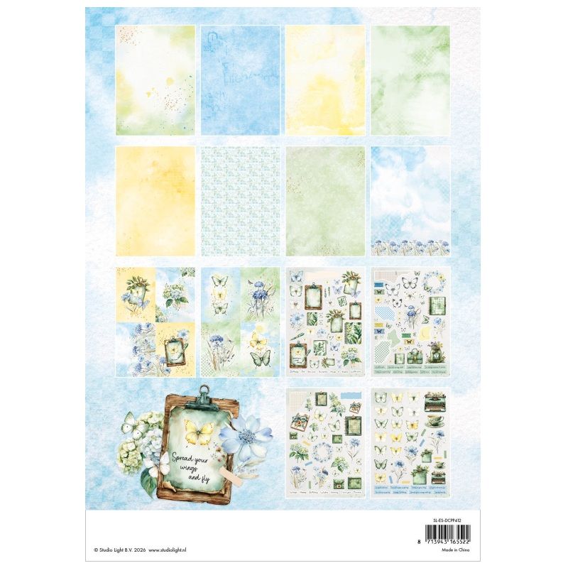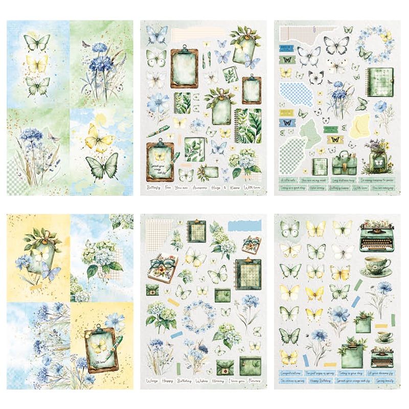 Designové papíry a obrázky v kreativním bloku jménem Spring Wings ("jarní křidélka") jsou perfektní na výrobu motýlích přání, visaček, dekorací a další jarní tvorbu. Papír má vysokou gramáž a neobsahuje kyseliny ani lignin způsobující žloutnutí a křehnutí – výrobky tak zůstanou krásné po dlouhou dobu.