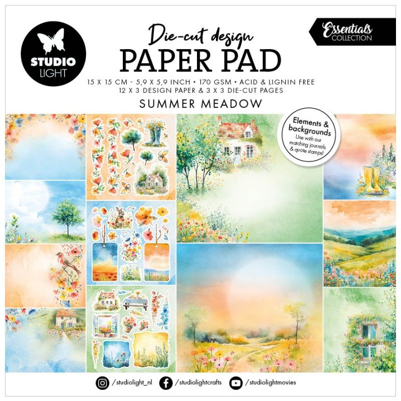 Designové papíry a obrázky v kreativním bloku jménem Summer Meadow ("letní louka") jsou perfektní na výrobu rozkvetlých přání, visaček, dárků, dekorací a na další letní tvorbu. Papír má vysokou gramáž a neobsahuje kyseliny ani lignin způsobující žloutnutí a křehnutí – výrobky tak zůstanou krásné po dlouhou dobu.