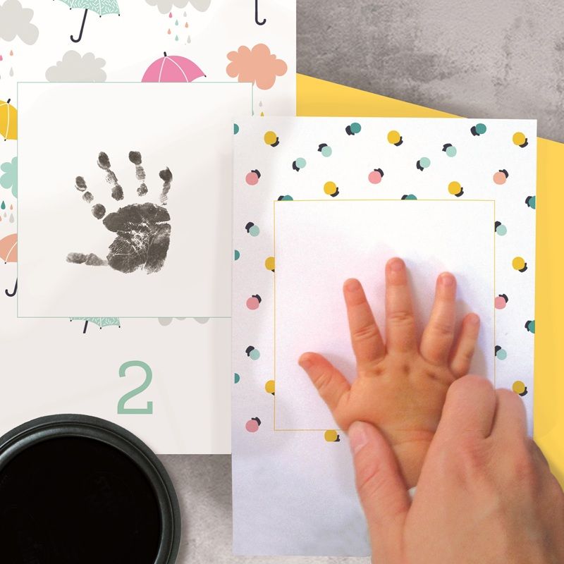 Každý měsíc miminku obtiskněte ruku na kartu a pak udělejte fotku. Schovejte si fotku i obtisk jako památku :)