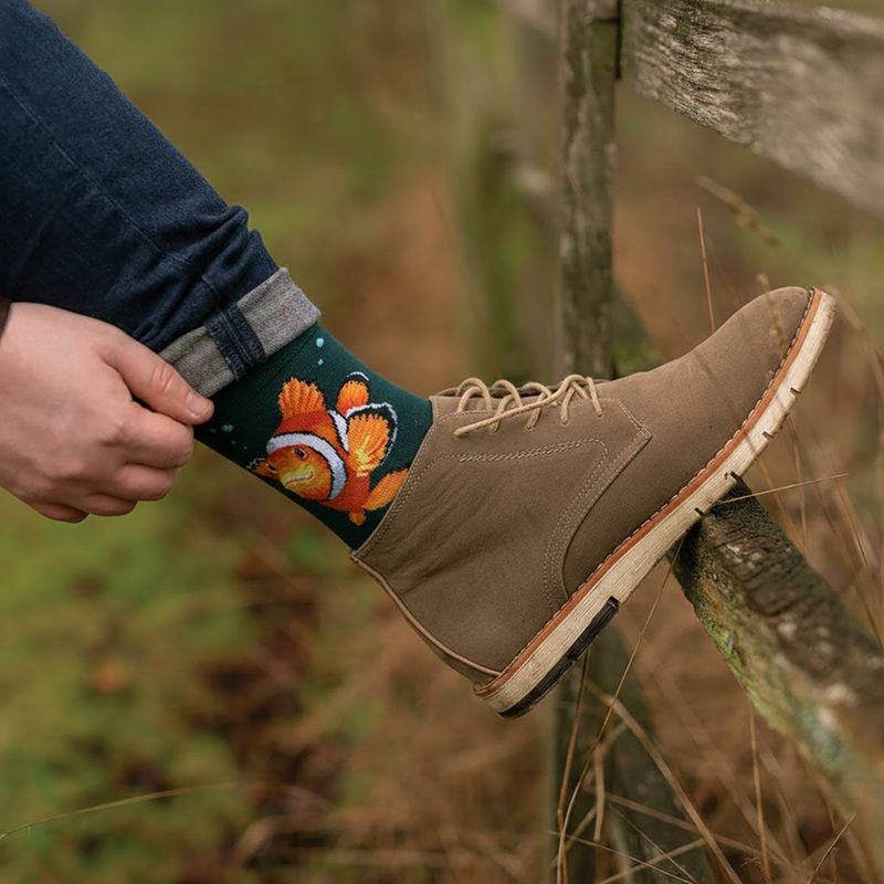 Jako všechny ponožky od britské značky Wrendale Designs jsou vyrobeny z měkoučkého bambusu, který je hřejivý a prodyšný, materiál je navíc antibakteriální a šetrný k přírodě. Lze prát v pračce na 40 °C. Jedna univerzální velikost (pánská 40–46).
