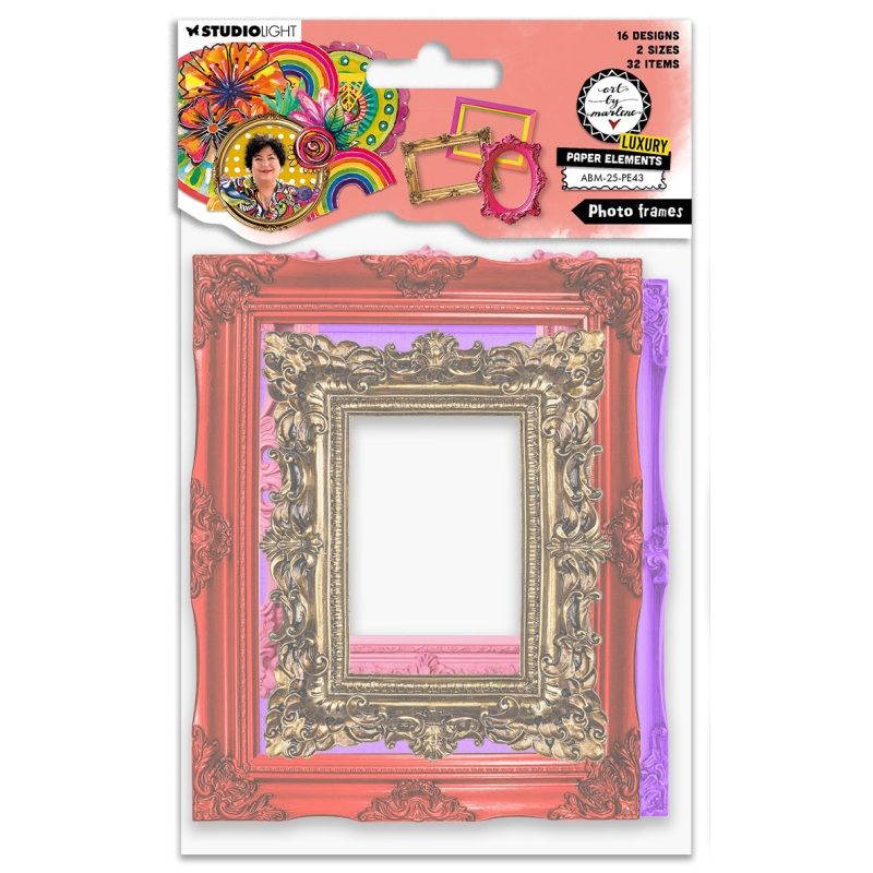 Rámečky není třeba vystřihovat, stačí jen jednoduše nalepit na projekt – obzvlášť doporučujeme tekuté lepidlo Art by Marlene. Balení obsahuje 2 x 16 designů, každý motiv je ve 2 různých velikostech.