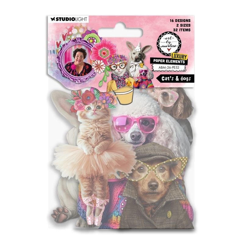 Sada dekorativních papírových obrázků od naší oblíbenkyně Art by Marlene obsahuje motivy pejsků a kočiček s vtipnými detaily dokreslenými v zářivých barvách. Hodí se na nejrůznější papírové tvoření. Nic nemusíte vystřihovat, stačí jednoduše zakomponovat a nalepit.