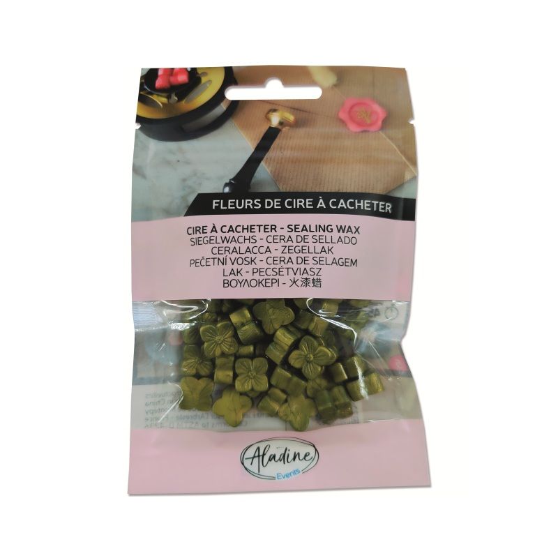 Pečetící vosk ve formě granulí tvarovaných jako kytičky se používá s pečetní sadou umožňující ho rozehřát v teflonové lžičce nad plamenem svíčky. K výrobě 1 pečetě stačí rozehřát 2 kytičky, při práci s pečetními formami doporučujeme 3 kytičky. Pečeť můžete vytvořit jednobarevnou nebo různé barvy míchat.