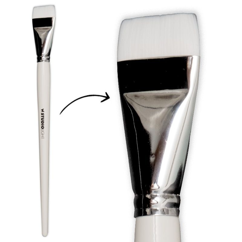 Umělecký štětec s extra širokým syntetickým vlasem, který je zároveň velmi jemný i pevný. Má úzkou hranu a dokáže tak vytvořit tenkou linii, jeho šířka se hodí k natírání větších hladkých ploch. Krátký vlas umožňuje větší kontrolu nad tím, kam nanášíte barvu. Štětec využijete na: