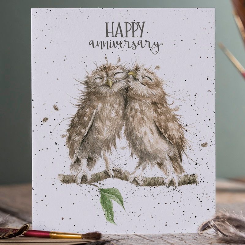 Sada přání a obálky od rodinné firmy Wrendale Designs s akvarelovou malbou sovího páru od britské výtvarnice Hanny Dale má na přední straně nápis „Happy anniversary“ – šťastné výročí. Skvěle se bude hodit k popřání všeho nejlepšího k výročí svatby a dalších milníků.