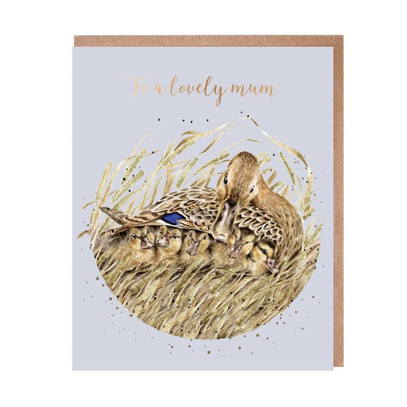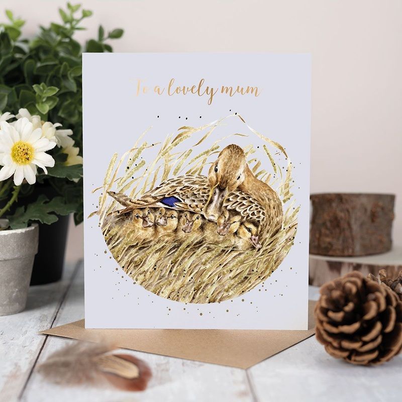 Sada přání a obálky od rodinné firmy Wrendale Designs s akvarelovou malbou kachní maminky a jejích kačátek od britské výtvarnice Hanny Dale má na přední straně nápis „To a lovely mum“ – milé mamince. Skvěle se bude hodit k narozeninám, svátku nebo na den matek .