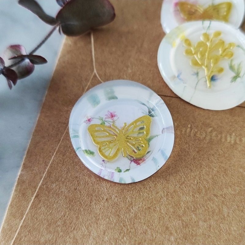 Tip! Věděli jste, že pečeť nemusíte vytvářet přímo na finálním projektu? Když ji vyrobíte na mramorové či keramické podložce, pečeť z ní lze lehce sejmout. Na její spodek pak stačí umístit oboustranně lepicí pásku a vyrobit tak větší množství pečetních „samolepek“ na pozdější použití. Případnou nepovedenou pečeť lze jednoduše rozstříhat a znovu rozehřát k výrobě nové pečeti.