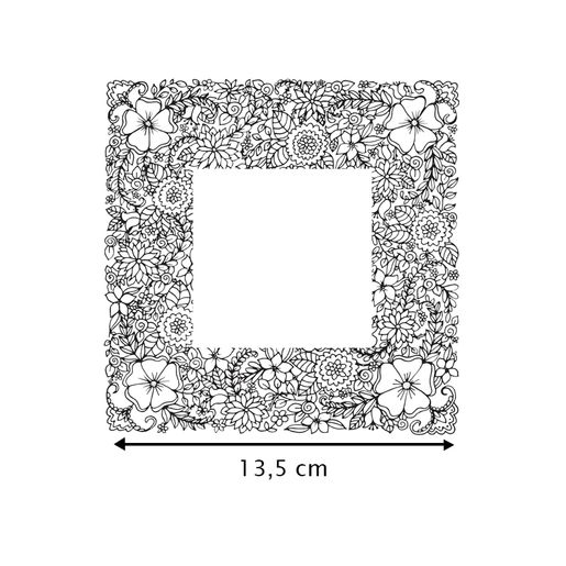 Dřevěné rámečkové razítko s bohatými květinovými motivy, vhodné nejen pro slavnostní projekty. Rozměr 13,5 x 13,5 cm.