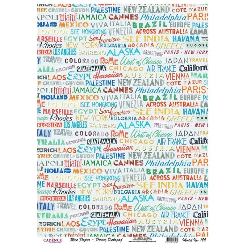 Rýžový papír Cadence, A4 - Cestovní nápisy