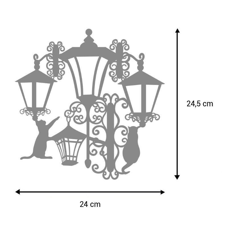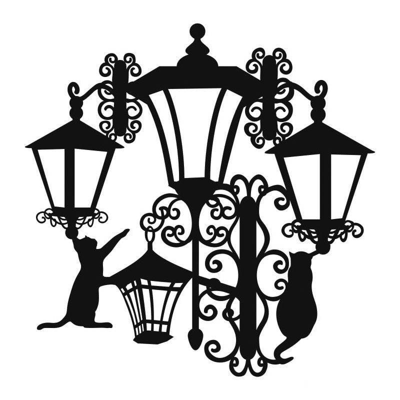 Naše speciální reverzní šablonky fungují opačně než šablony klasické – po nanesení barvy zůstane motiv v barvě vašeho podkladu, vytvoří barevný „stín“. V případě této šablony zůstanou černé kontury lamp a siluety koček bezbarvé, svou zvolenou barvičkou tvoříte prostory mezi nimi.