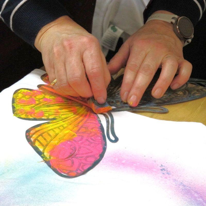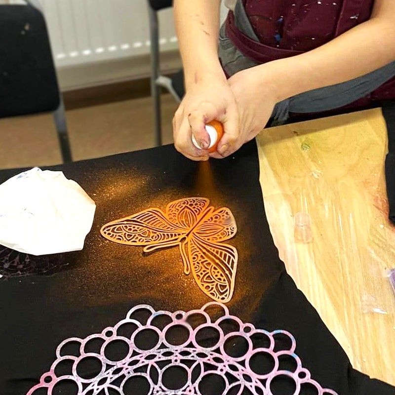 Speciální reverzní šablonky fungují opačně než šablony klasické – po nanesení barvy zůstane motiv v barvě podkladu, vytvoří barevný „stín“.