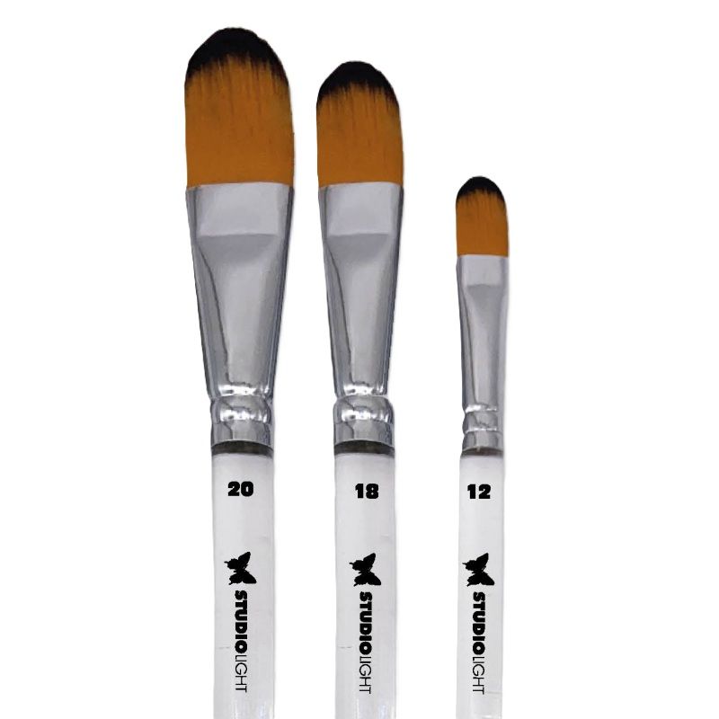 Sada plochých, zakulacených štětců, tzv. kočičích jazýčků od výtvarnice Art by Marlene. Takto tvarovanými štětci lze jednoduše malovat křivky okvětních lístků, listy či peří.
