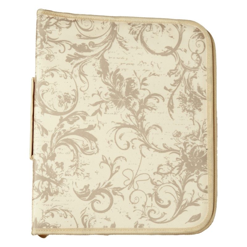 Má elegantní vintage ornament na tvrdých deskách, které zaručeně ochrání všechny vaše poklady. Uvnitř kapsy na zip je klasický pořadač na 4 kroužky umožňující vložit jakékoli kapsy a eurofolie (nejsou součástí balení).