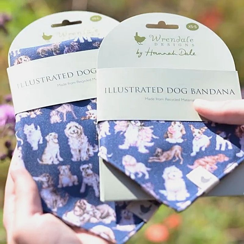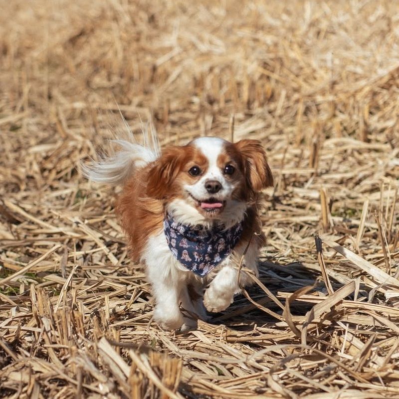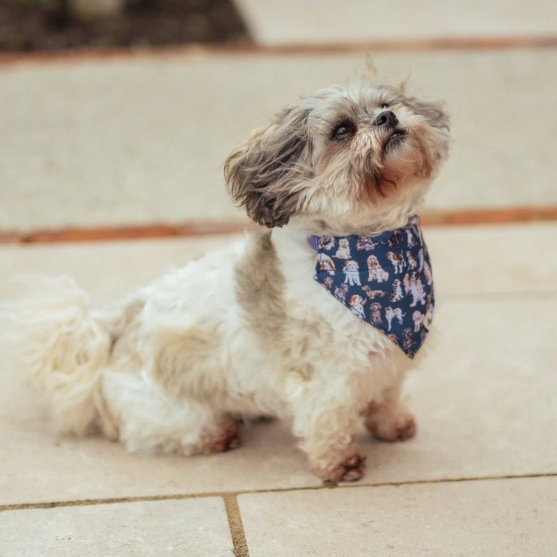 Psí šátek bude vašemu nejlepšímu příteli slušet na focení, speciální příležitosti i na každodenní nošení! Ve velikosti XS/S se hodí pro malá plemena a stačí ho navléct na obojek – šíře tunelu šátku je 3 cm. Ozdoben je oboustranně akvarelovými ilustracemi nejrůznějších druhů psů na námořnicky modrém pozadí. Vyroben je z recyklovaných materiálů a lze ho prát v pračce na 30 °C.