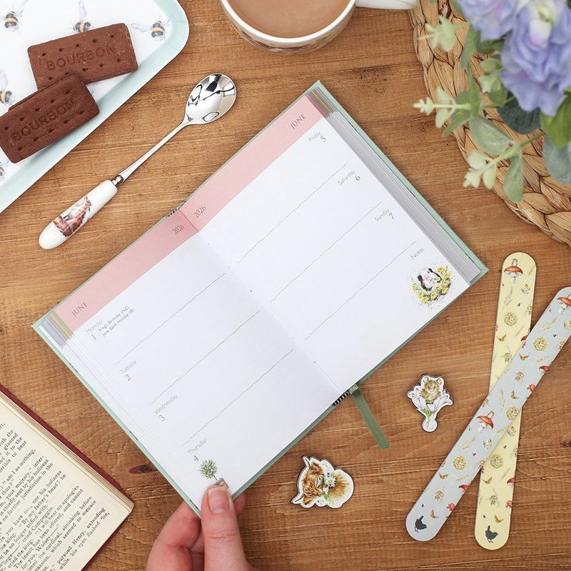 Plánovací diář na rok 2026 od britské značky Wrendale Designs je díky velikosti praktickým doplňkem do kabelky. Každému týdnu je věnovaná celá dvojstrana s prostorem na zápisky. Diář je úhledný a čistý, zároveň obsahuje krásné ilustrace zvířátek včetně spousty nových designů ze štětce Hanny Dale.