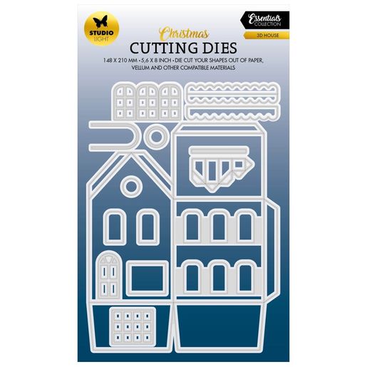Sada kovových vyřezávacích šablon do vyřezávacího strojku typu Big Shot, který snadno a dokonale vysekne motiv šablony – trojrozměrný domeček. Už nic nemusíte pracně vystřihovat.