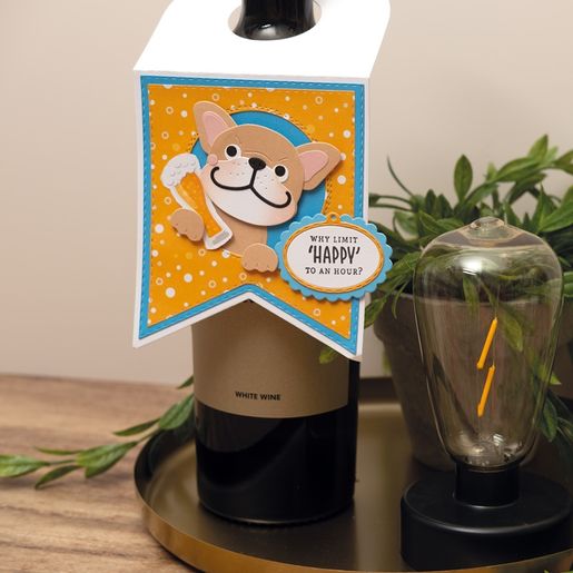 Kovové šablony do vyřezávacího strojku typu Big Shot, slouží k vyřezávání ozdobných cedulek na láhve vína, šampaňského nebo třeba doma připravené šťávy či sirupu. Vyřezanou visačku stačí dozdobit dle vlastní fantazie, zavěsit na hrdlo a obdarovat své bližní! Základ visačky je vhodné vyříznout z tvrdšího jednobarevného papíru a menší zdobné panely pak z papírů se zajímavým potiskem.